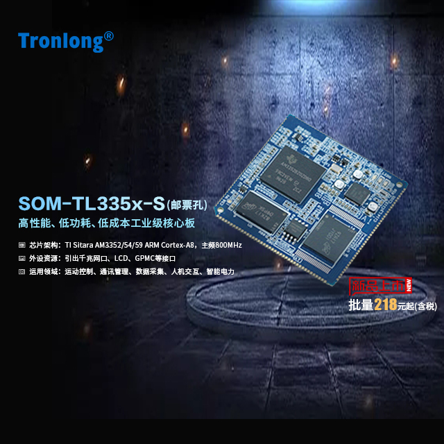 創龍科技SOM-TL335x-S是一款基于TI Sitara系列AM3352/AM3354/AM3359 ARM Cortex-A8高性能低功耗處理器設計的低成本工業級核心板,通過郵票孔連接方式引出千兆網口、LCD、GPMC等接口。核心板經過專業的PCB Layout和高低溫測試驗證,穩定可靠,可滿足各種工業應用環境。 用戶使用核心板進行二次開發時,僅需專注上層運用,降低了開發難度和時間成本,可快速進行產品方案評估與技術預研。