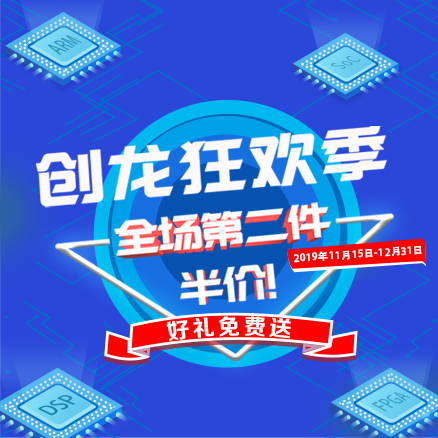 全場第二件半價,創龍狂歡季 1)開發板(DSP、ARM、FPGA) 2)仿真器(XDS560V2、XDS200、XDS100V2等) 3)6種禮品免費送(移動電源、U盤、簽字筆、魔方插座、保溫杯、2020年日歷) 4)11月15日-12月31日 活動詳情 官網:www.btstjx.com 商城:tronlong.taobao.com