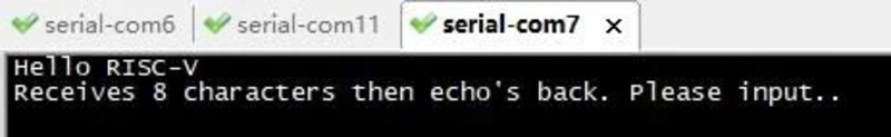 在RS485 UART7串口終端輸入8個字符后按回車,串口終端將回顯接收到的字符。