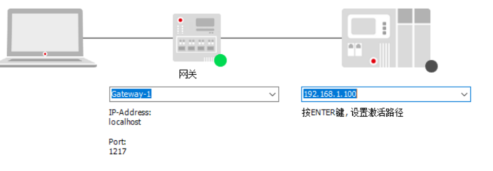 回到CODESYS的主界面,鼠標雙擊"Device",在彈出來的Device界面,點擊“通信設置選項”。如下圖所示,在界面中設備的狀態標識為黑色,表示未連接設備。在激活路徑輸入評估板IP地址192.168.1.100,并回車。