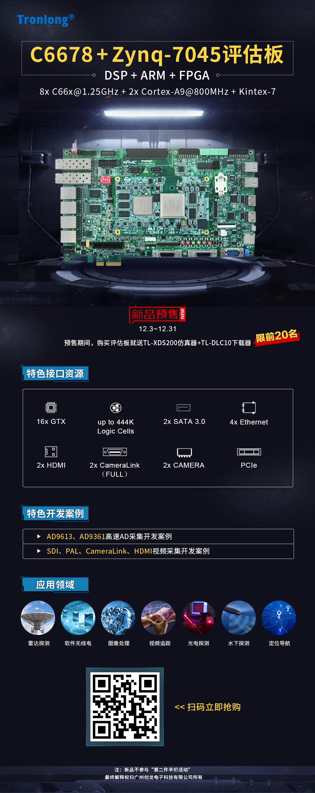 11月11日-12月31日為創龍年終促銷季,DSP/ARM/FPGA評估板、仿真器等全場第二件5折,歡迎訪問創龍科技官方商城(tronlong.taobao.com)了解詳情與選購。
