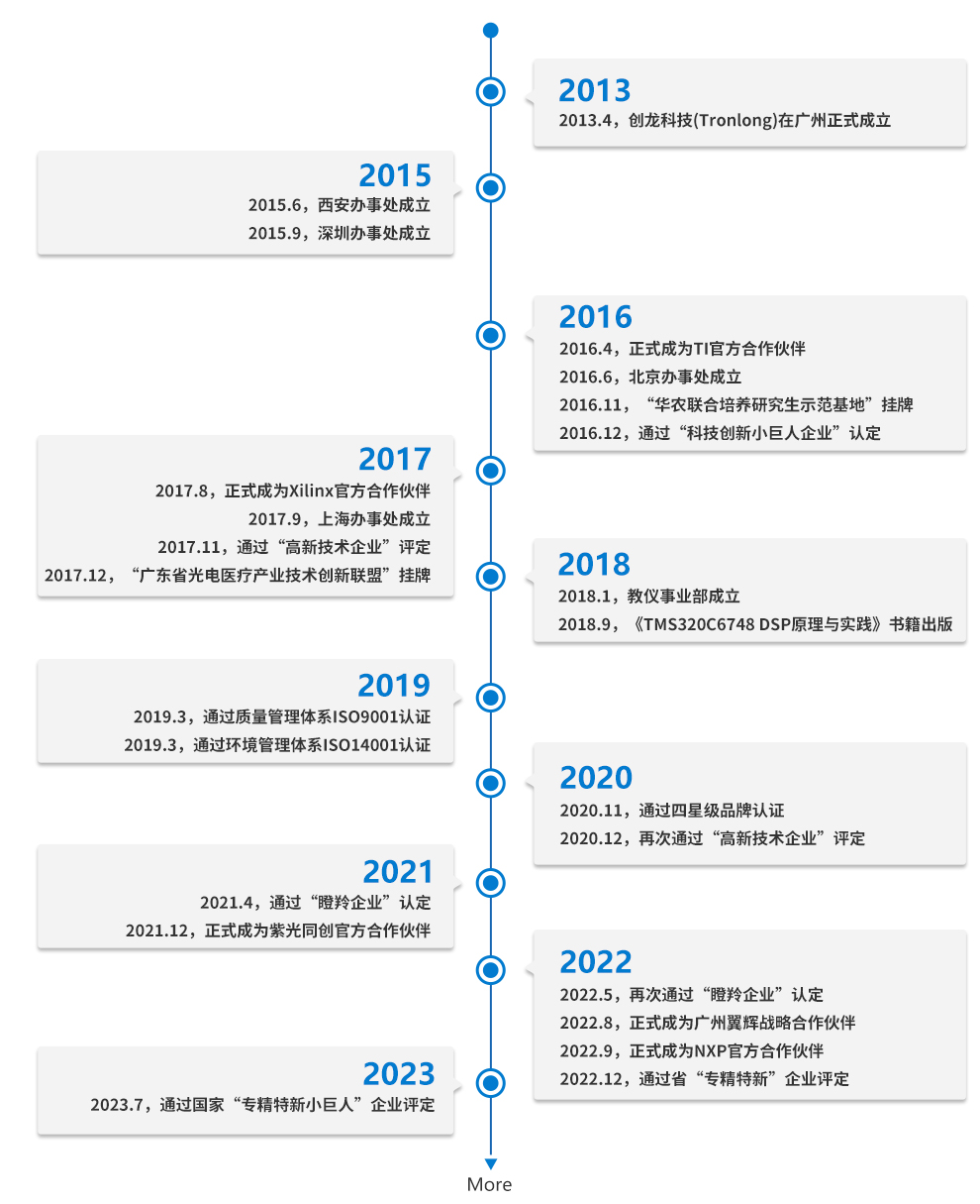 創龍科技(Tronlong)始創于2013年,作為嵌入式工業板卡提供商.業務主要涵蓋工業核心板、工業評估板、工業單板機、ARM工控機,總部位于廣州科學城,在全國10+城市設有服務中心。