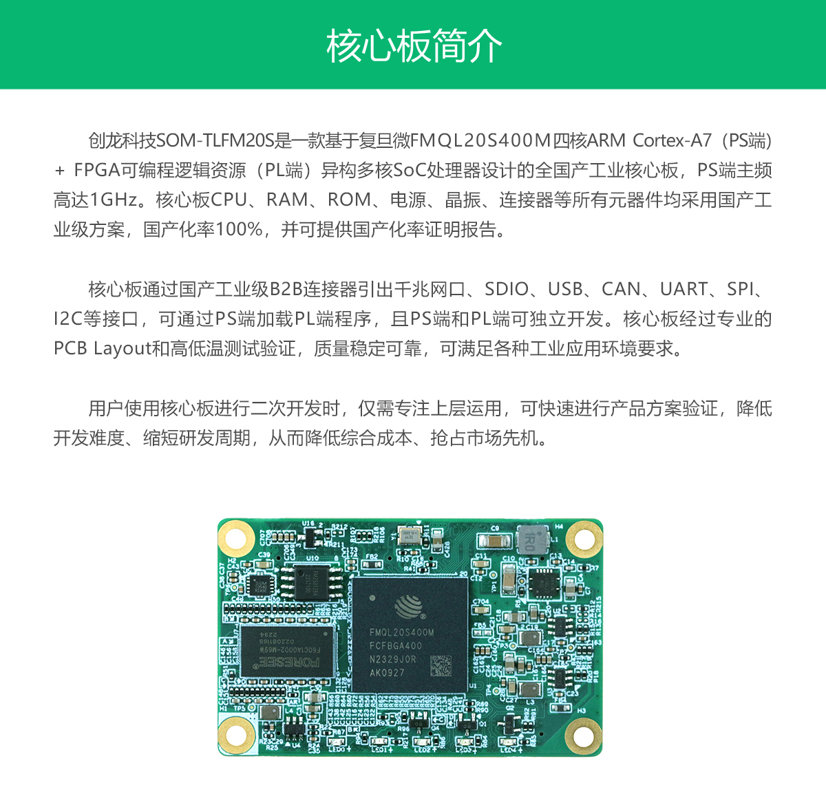 創龍首頁 >產品中心 > 工業核心板 > 復旦微 > ARM+FPGA > FMQL20SM